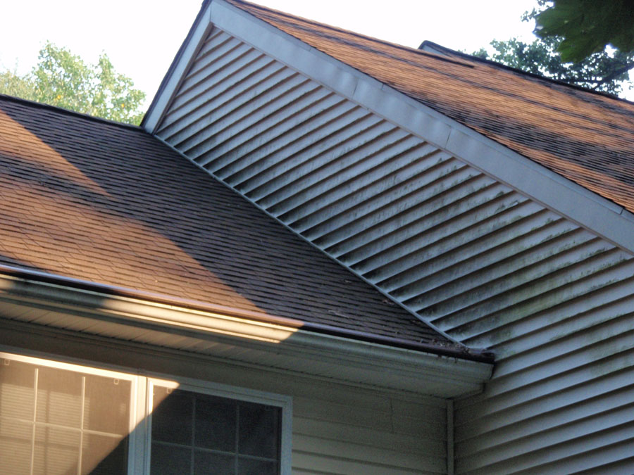 Power washing dramatically improves the appearance of any roof — old or new, by removing black streaks, moss, dirt, green algae, mildew stains — virtually any markings caused by time and nature and will give your roof and your home a beautiful, uniform new look. Please view our before and after roof cleaning gallery to see examples of our work.